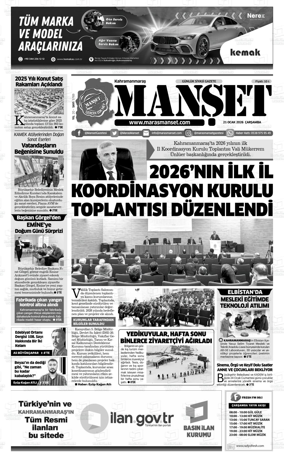 KAHRAMANMARAŞ MANŞET