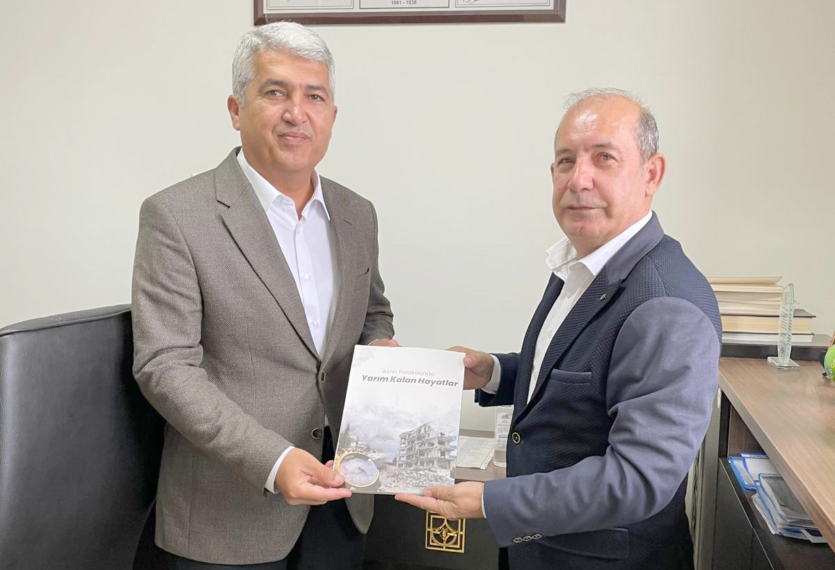 Ziyarette Yazar-Gazeteci Kadir Çelik, www.guncelhaber27.com internet sitesi ile birlikte yürütülen çalışmalara ilişkin bilgi verdi.Kahramanmaraş Merkezli 6 Şubat 2023 tarihli depremlerinin hüzün ve acılarının, yardımlaşma ruhunun ve kenetlenmeyi anlatan. İslahiye Kaymakamı Mehmet Soylu, İslâhiye Belediye Başkanı Kemal Vural, İstanbul Valisi Davut Gül, Gaziantep Valisi Kemal Çeber ve Gaziantep Büyükşehir Belediye Başkanı Fatma Şahin’in deprem ve sonrasıyla ilgili duygu ve düşüncelerini yansıtan. Yazar-Gazeteci Kadir Çelik ve Yazar-Gazeteci Zekeriya Şimşek tarafından kaleme alınan ‘Asrın Felakatinde Yarım Kalan Hayatlar’ adlı kitabı taktim etti.