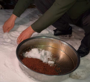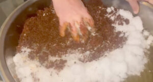 Nurdağı’nda etkili olan kar sonrasında işletme sahibi Mehmet Savaş Önek,Ertan Yurtaş ve Şehmuz Kaya, kar ile çiğ köfte yoğurdular.Şehmus Ktepsiye doldurduğu temiz kar, tescilli İslahiye biberi ile birlikte çiğ köfte yoğurdu. Buz yerine kar koyarak yoğrulan çiğ köfteyi tadanlar ilk kez kar ile yoğrulan çiğ köfte yemenin mutluluğunu yaşarken, lezzetine tam puan verdiler.