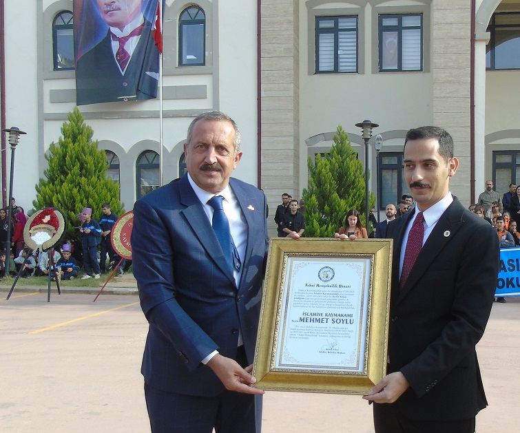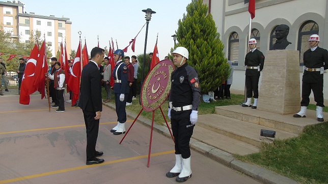 Hükümet Konağı Kaymakamlık binası bahçesindeki törende, İslahiye Kaymakamı Mehmet Soylu, 106. Topçu Alayı Komutanı Topçu Kurmay Albay Burak Dedeoğlu, Belediye Başkanı Kemal Vural, Atatürk Büstü’ne çelenk sundu.