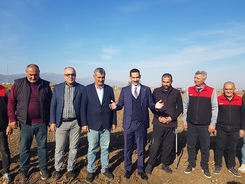 Soylu, Cevdetpaşa Mahallesi Üç Ağaç mevkisinde gerçekleştirilen ekim çalışmalarını yerinde inceleyerek çiftçilerden bilgi aldı.