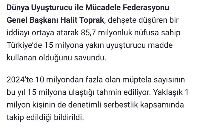 AK Parti Gaziantep eski Milletvekili Şamil Tayyar, Türkiye’de uyuşturucu kullanımıyla ilgili çarpıcı veriler paylaştı. Sosyal medya hesabı üzerinden açıklamalarda bulunan Tayyar, uyuşturucu ile mücadelenin yalnızca adli boyutla sınırlı kalmaması gerektiğine dikkat çekti.